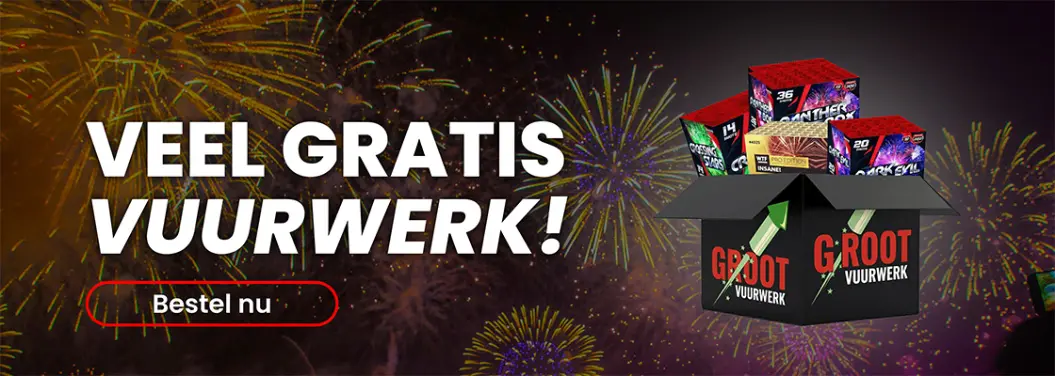 In onze webshop kun je online je gewenste bestelling plaatsen. Betalen kan altijd veilig en vertrouwd via iDEAL. Als je nu vuurwerk online bestelt, ontvang je ook nog eens een gratis artikel bij je bestelling. Wat wil je nog meer? Koop nu eenvoudig en goedkoop jouw groot vuurwerk bij dé vuurwerkspecialist van Nederland.